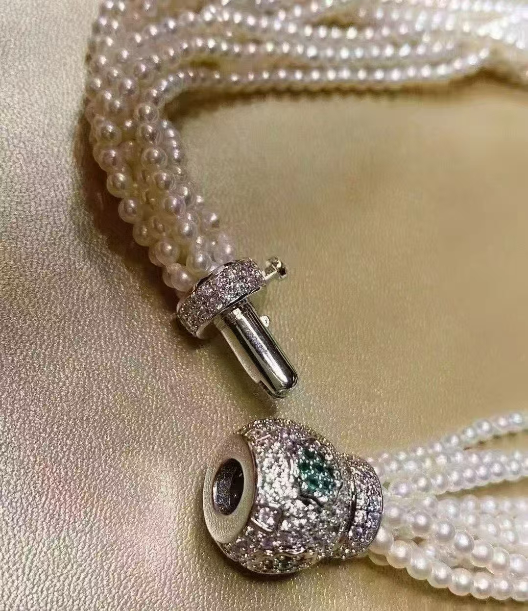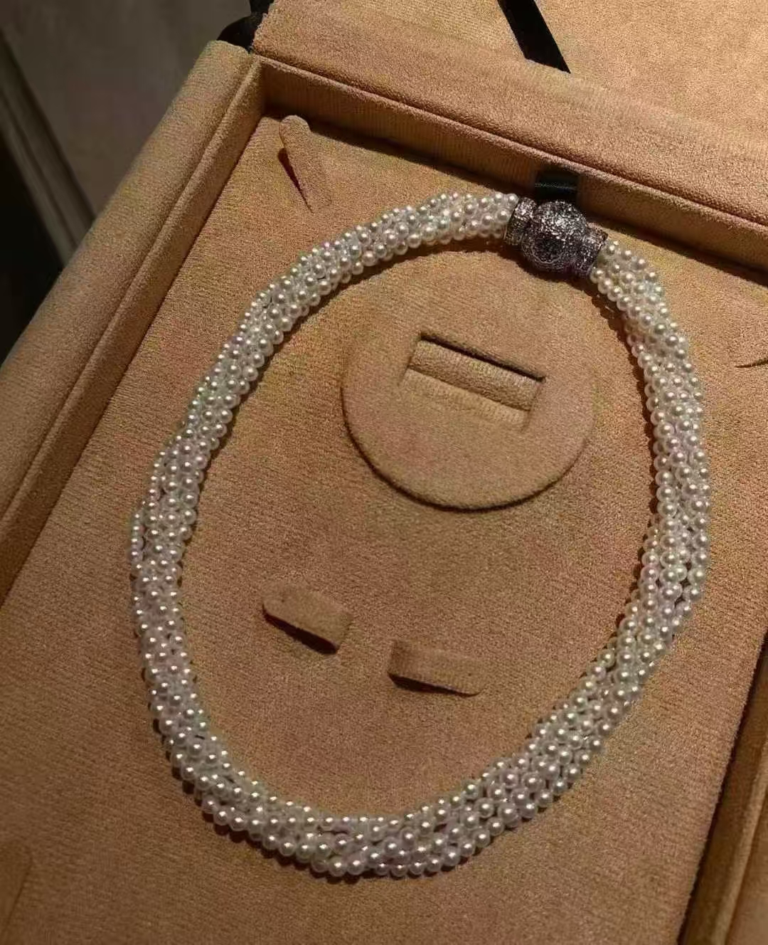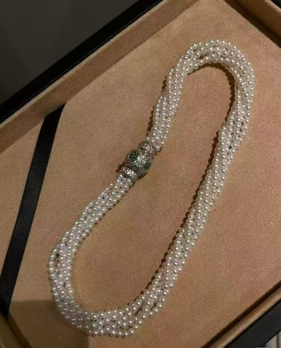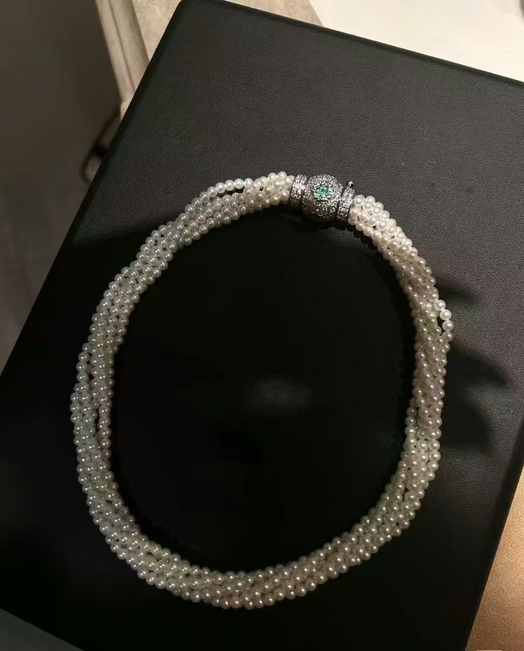 3-4mm freshwater pearl necklace, 8 layered (MJ-3019)