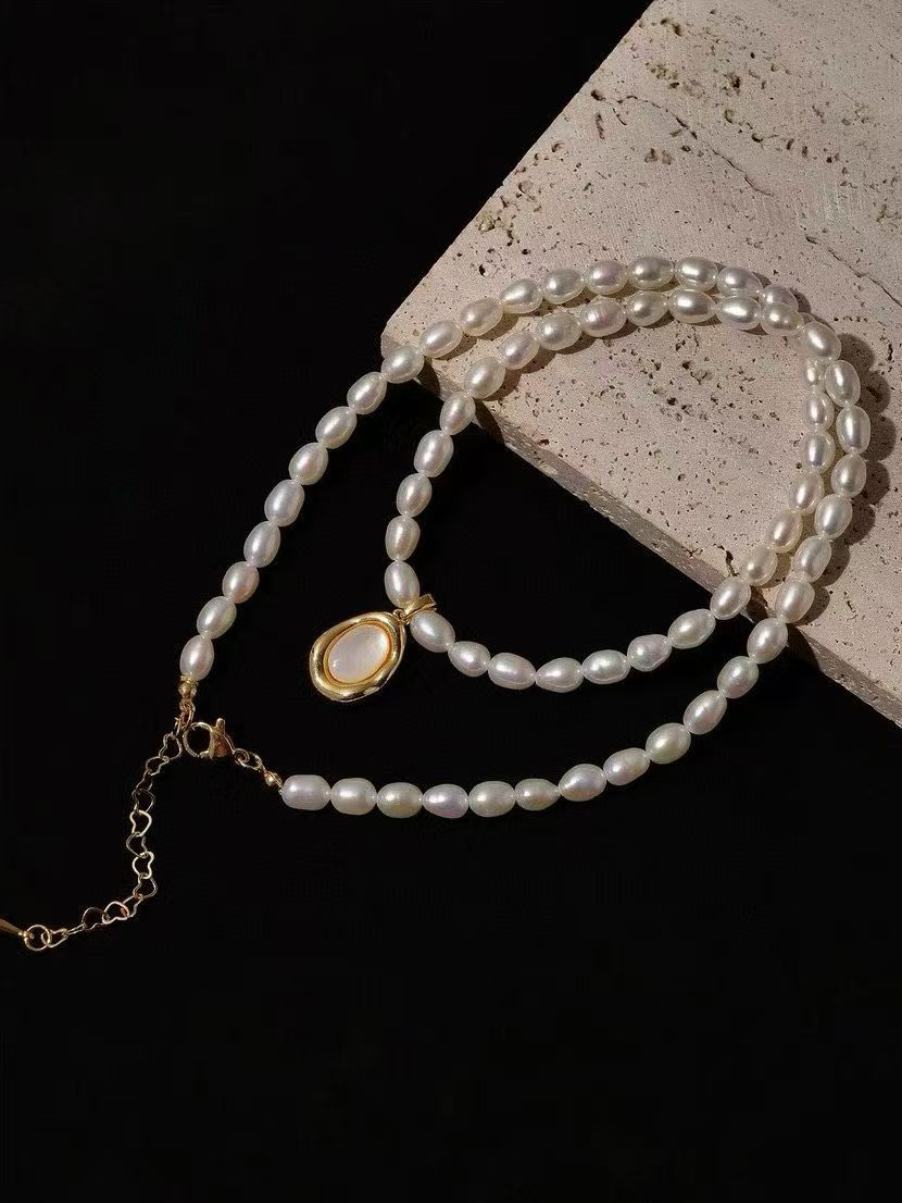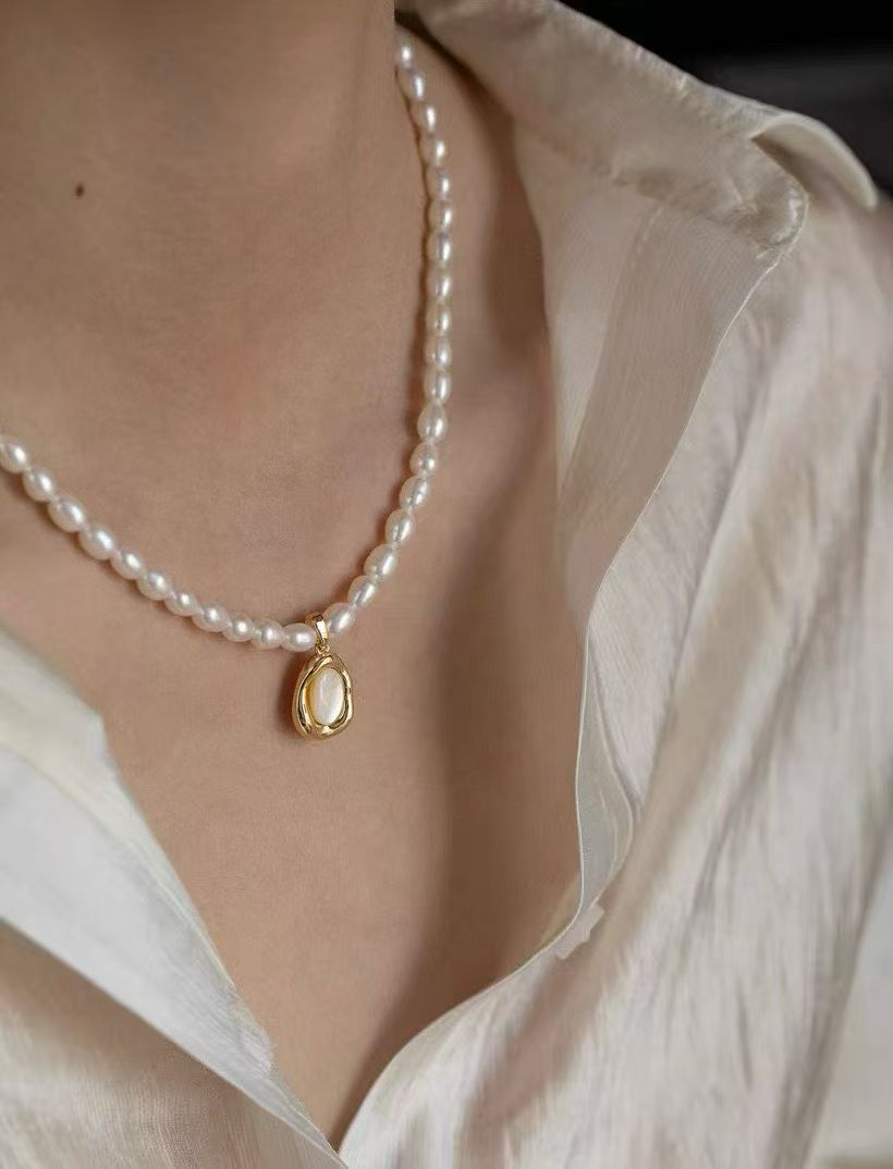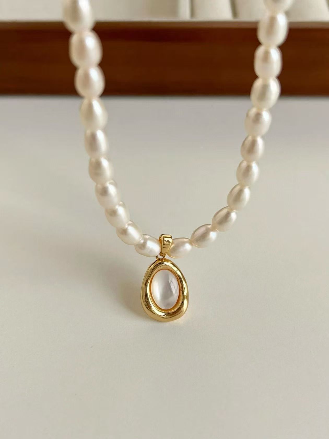4-5mm freshwater pearl necklace, alloy material (MJ-3025)