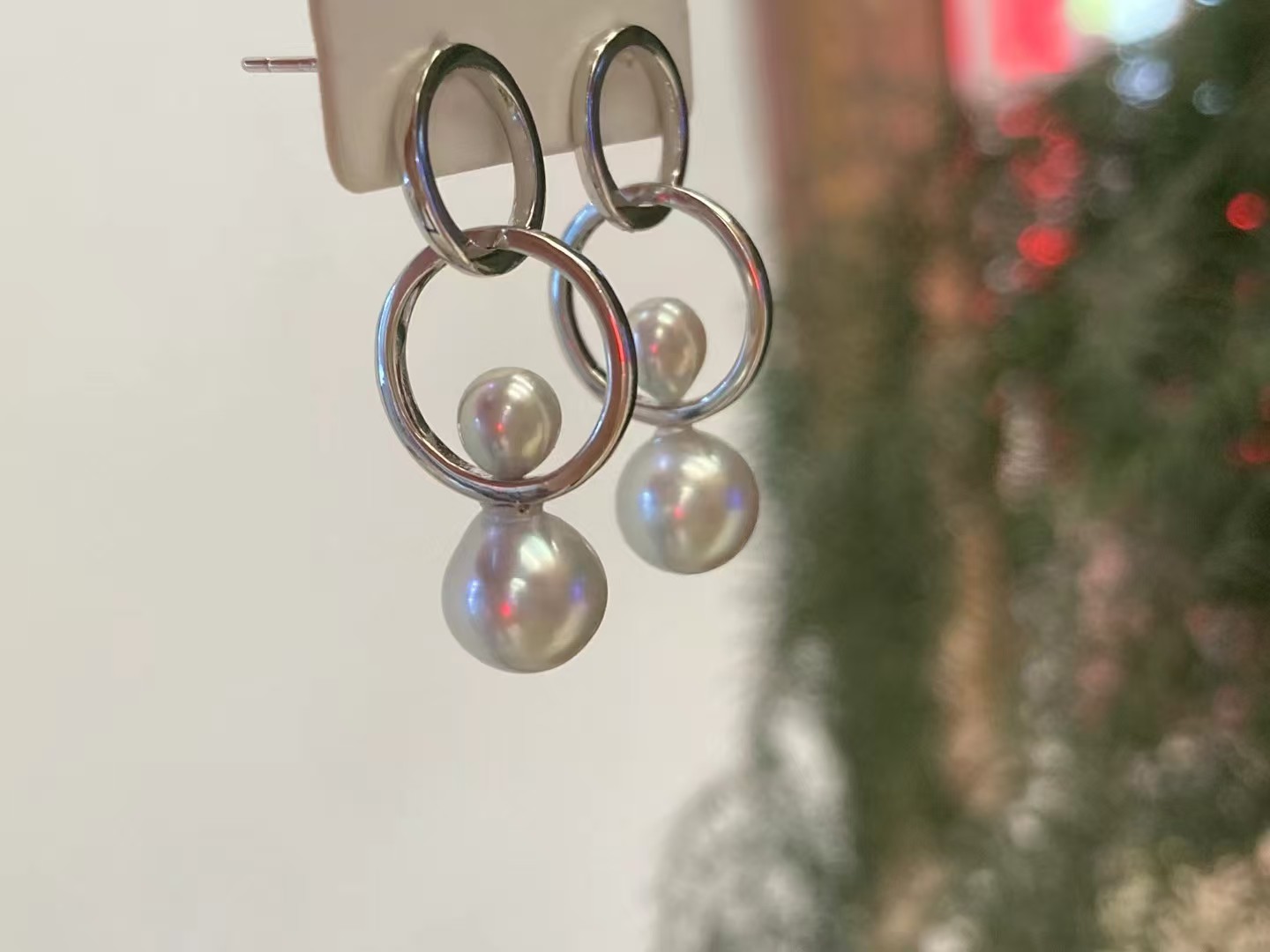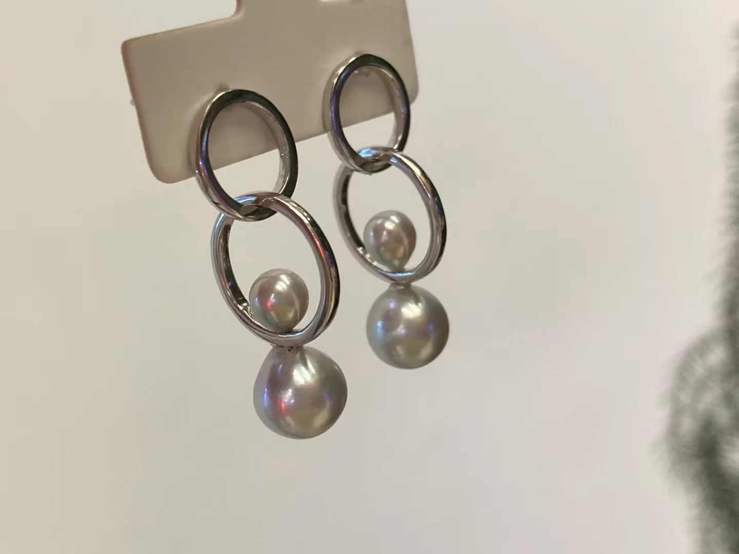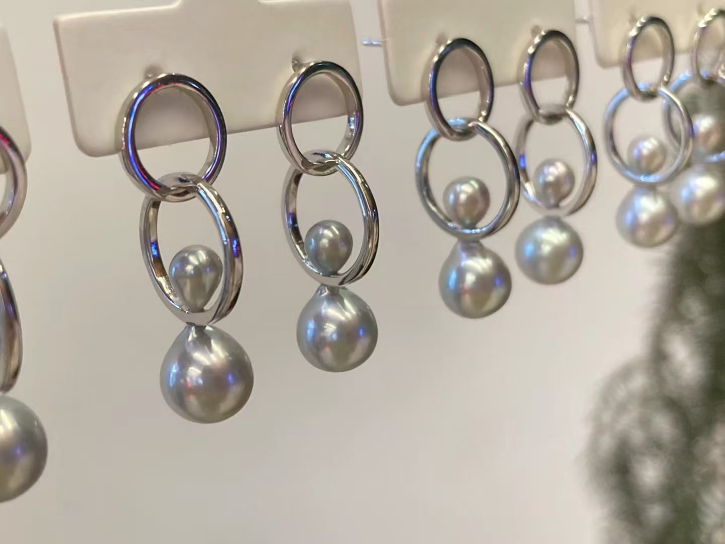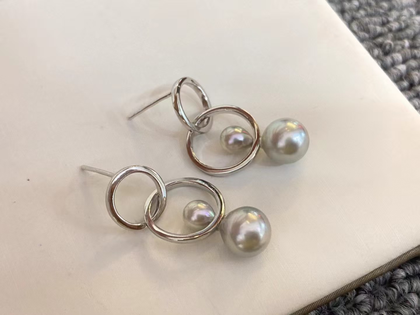 4-8mm Japanese grey color akoya pearl earrings, S925 silver material (MJ-3006)