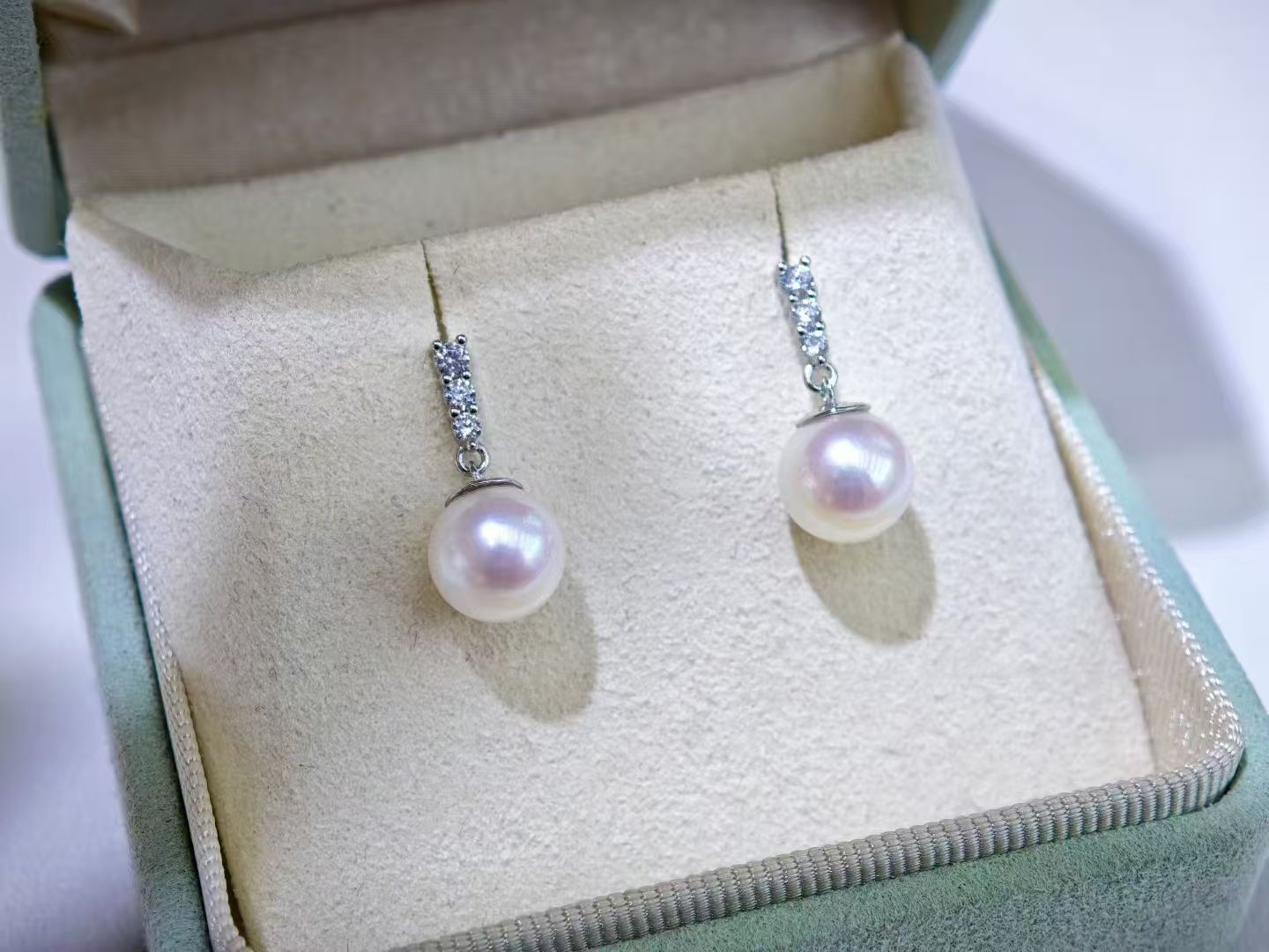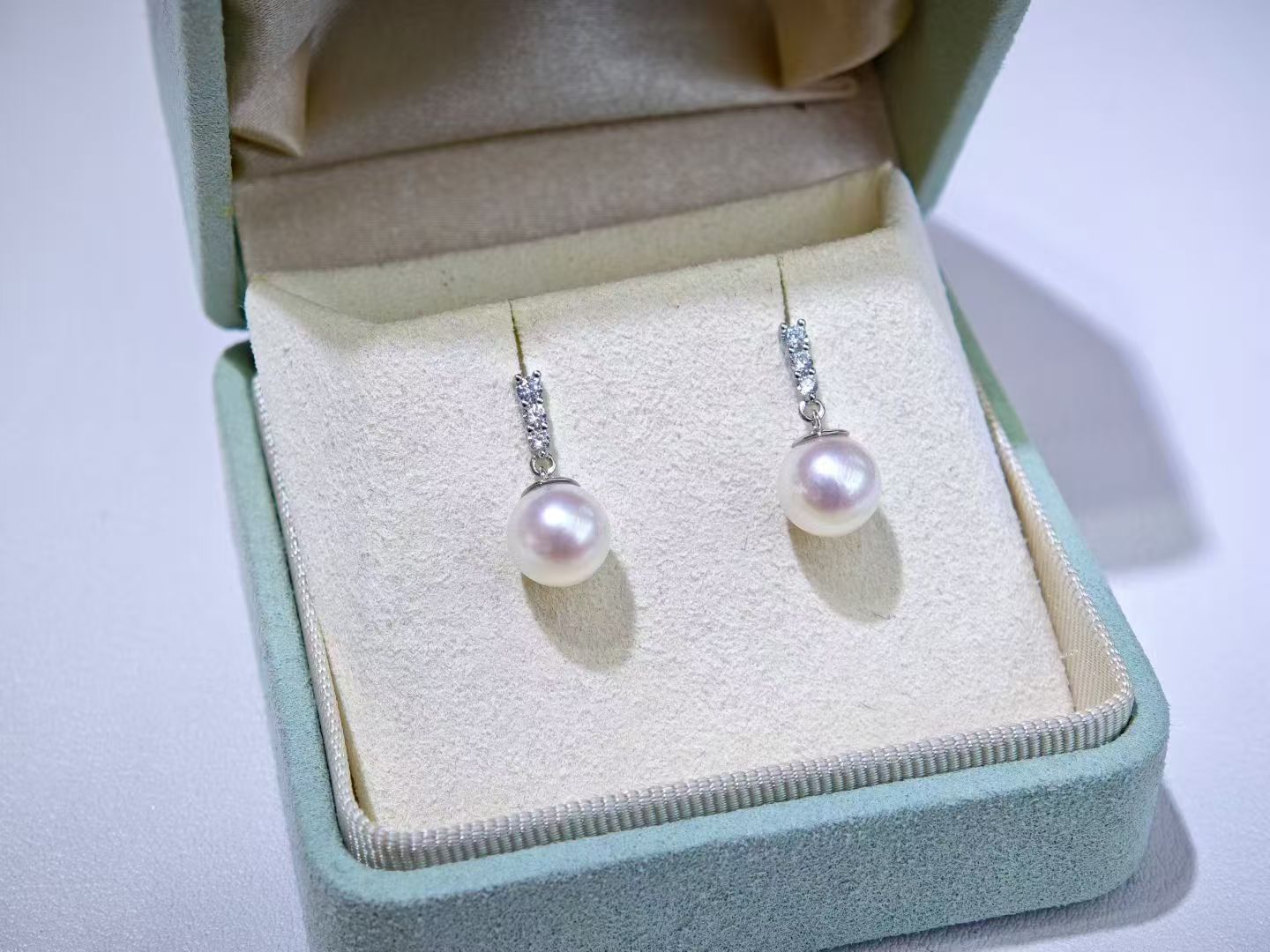 7.5-8mm Japanese akoya pearl stud earrings, S925 silver material (MJ-3003)