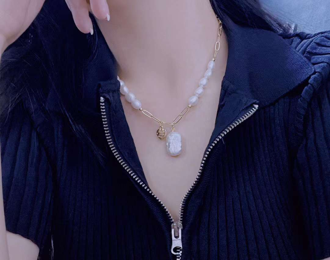 Freshwater baroque necklace , plated with 14k gold , Pearl Size : 8-9mm , Pearl Necklace Length : 40+5cm ( MJ-2032 )