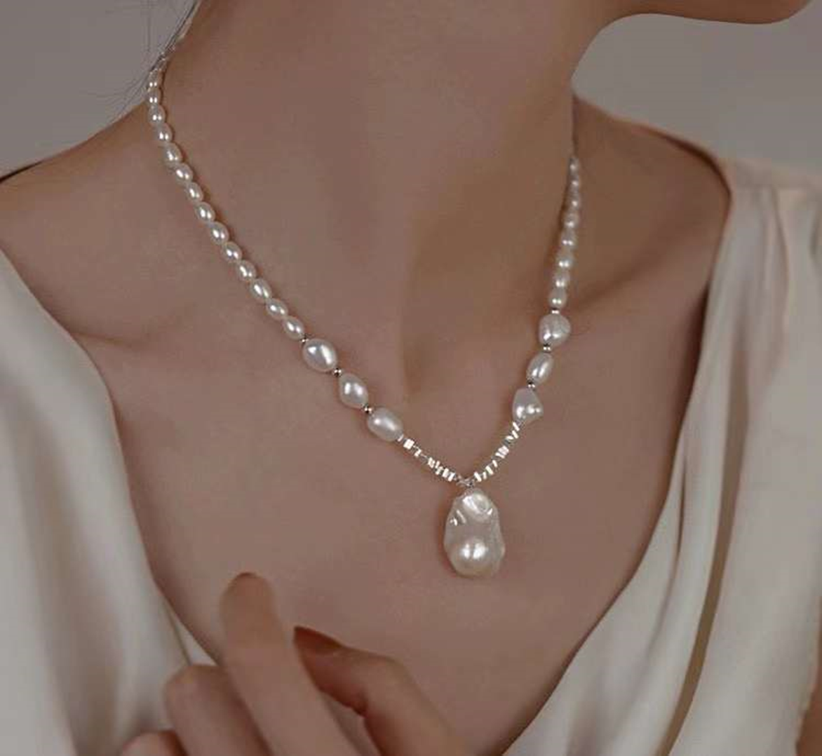 Freshwater baroque necklace , S925 silver , Pearl Size : 5-6mm/8-9mm/15mm , Pearl Necklace Length : 40+5cm ( MJ-2024 )