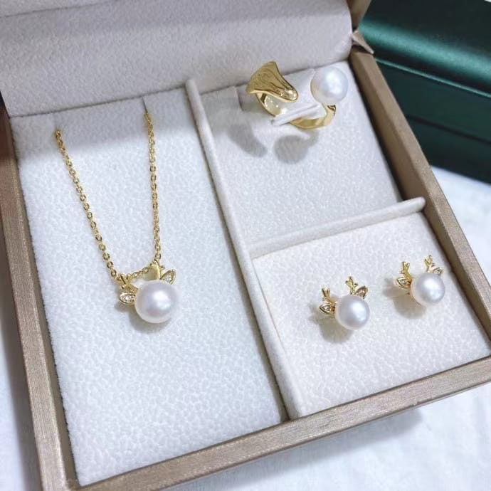 Freshwater pearl jewelry set , plated with18k gold , Pearl Size : 6-8mm , Pearl Necklace Length : adjustable/40+5cm ( MJ-2261 )