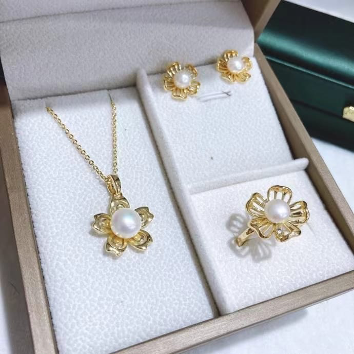 Freshwater pearl jewelry set , plated with18k gold , Pearl Size : 6-8mm , Pearl Necklace Length : adjustable/40+5cm ( MJ-2263 )