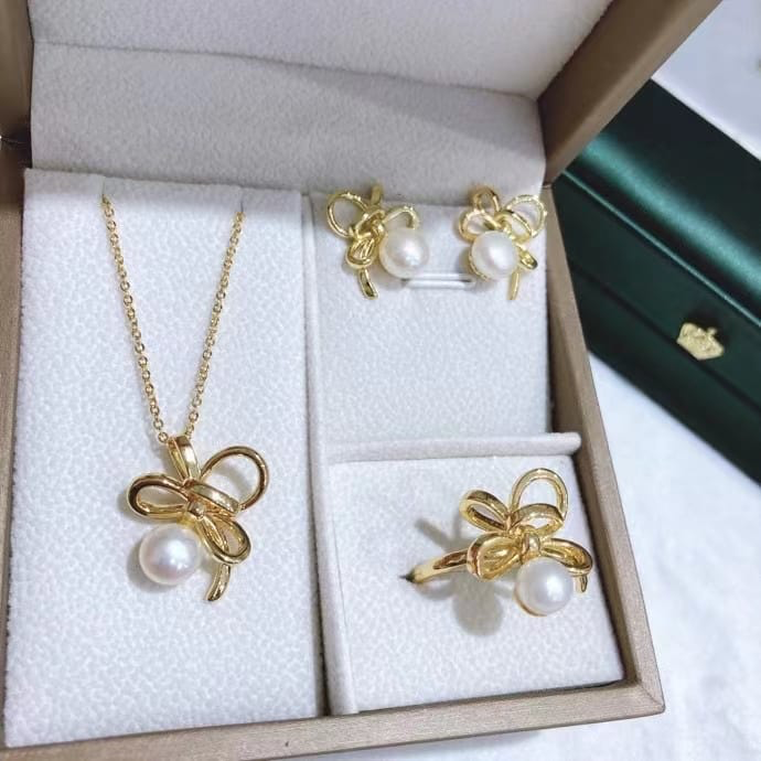 Freshwater pearl jewelry set , plated with18k gold , Pearl Size : 6-8mm , Pearl Necklace Length : adjustable/40+5cm ( MJ-2275 )