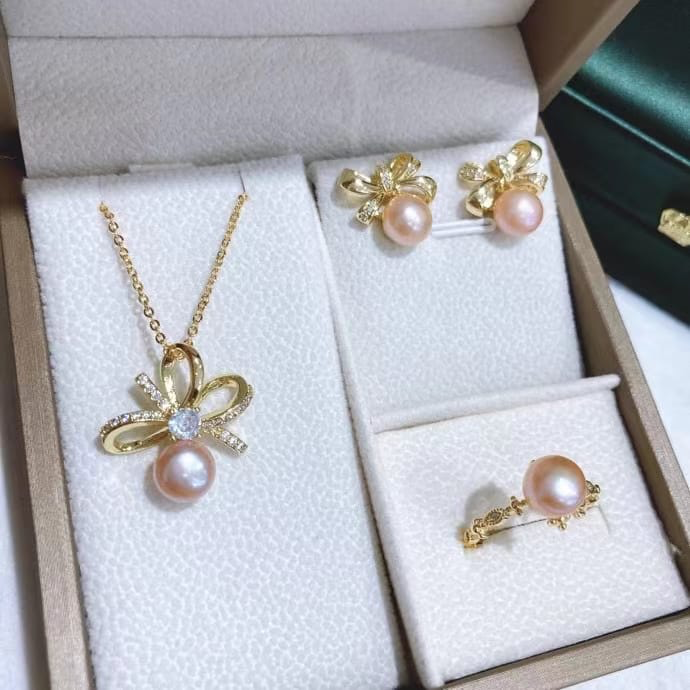 Freshwater pearl jewelry set , plated with18k gold , Pearl Size : 6-8mm , Pearl Necklace Length : adjustable/40+5cm ( MJ-2277 )