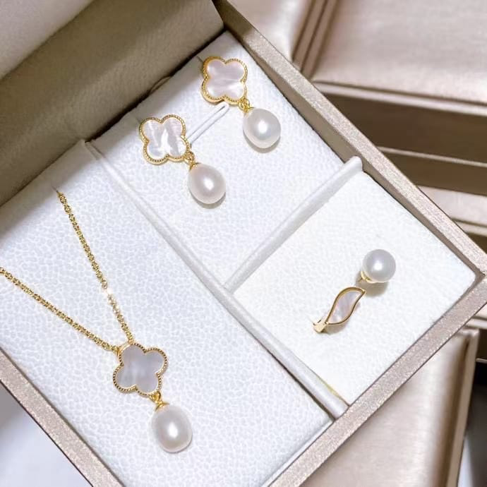 Freshwater pearl jewelry set , plated with18k gold , Pearl Size : 6-8mm , Pearl Necklace Length : adjustable/40+5cm ( MJ-2290 )