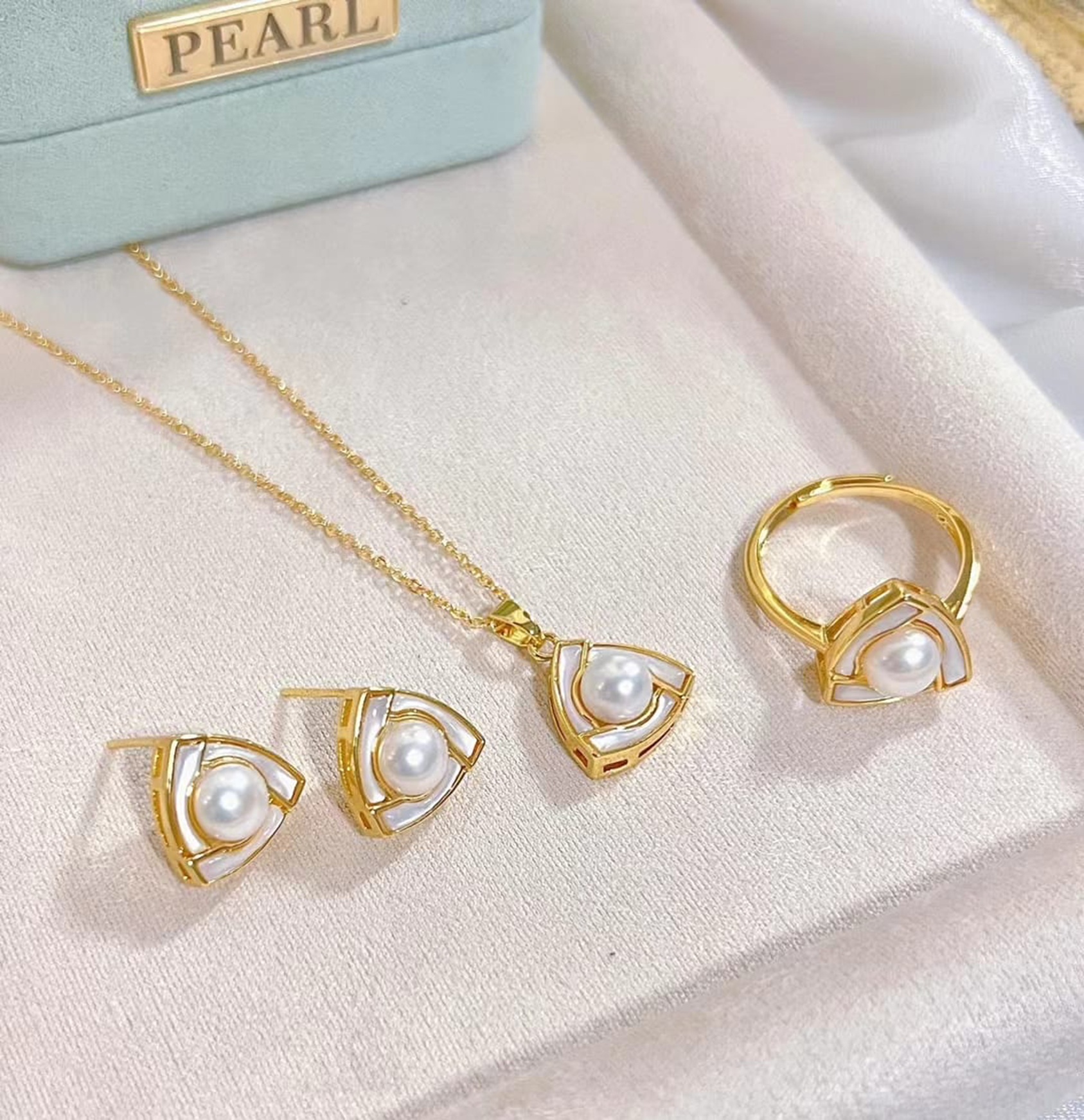 freshwater pearl jewelry set , plated with18k gold , Pearl Size : 7-8mm , Pearl Necklace Length : adjustable/40+5cm ( MJ-2229 )