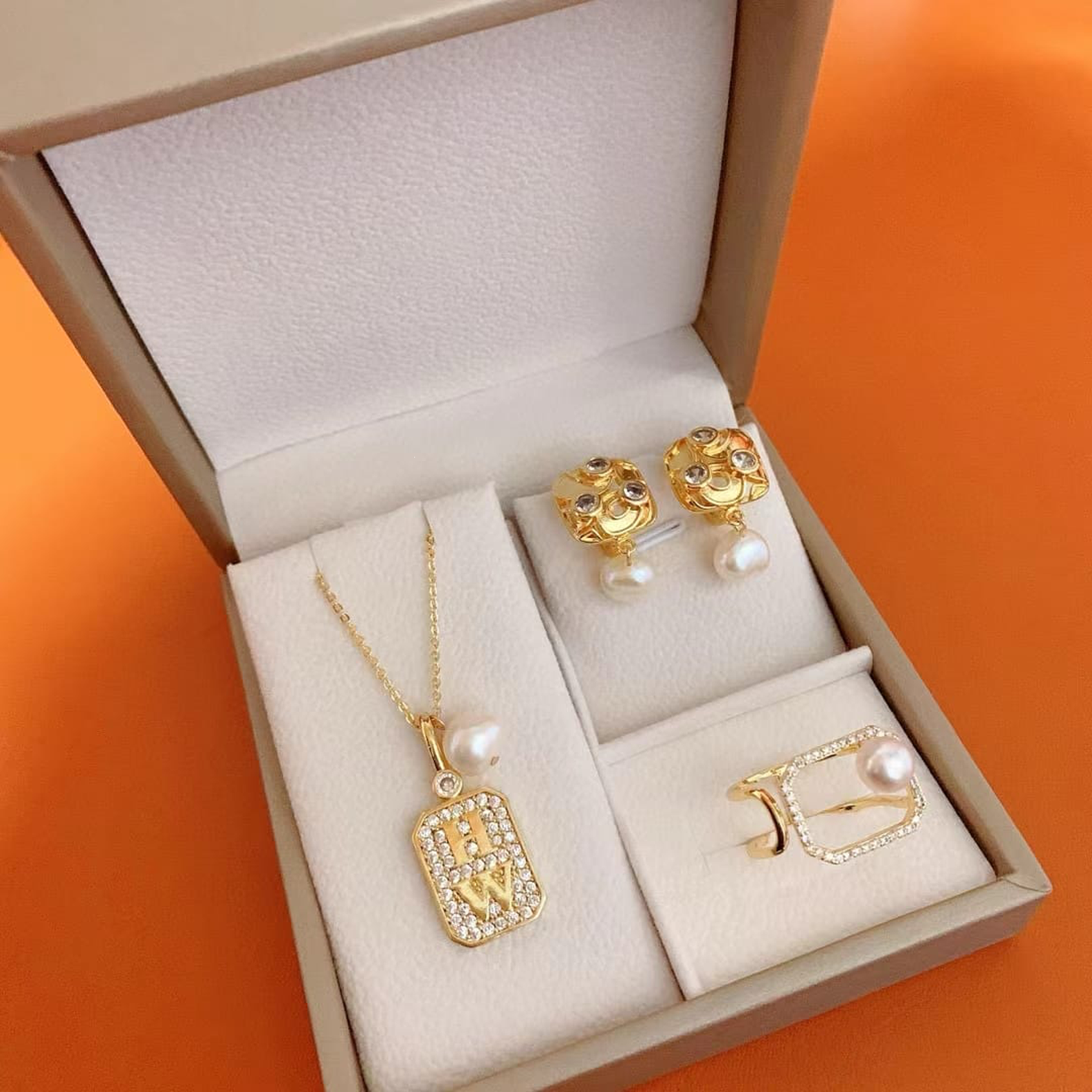Freshwater pearl jewelry set , plated with18k gold , Pearl Size : 7-8mm , Pearl Necklace Length : adjustable/40+5cm ( MJ-2230 )