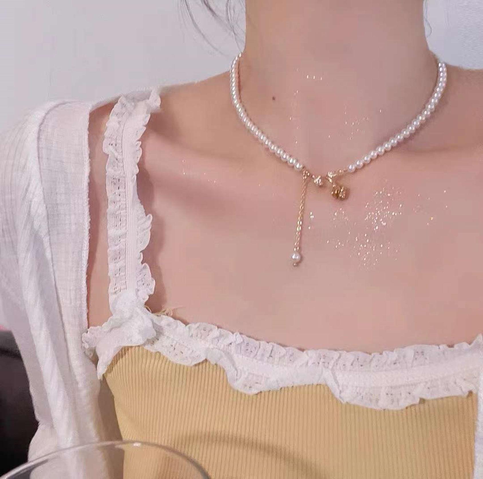 freshwater pearl necklace , plated with 18k gold , Pearl Size : 4-5mm , Pearl Necklace Length : 40+5cm ( MJ-2006 )