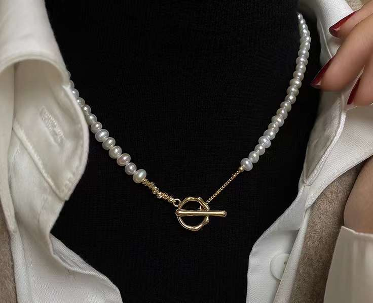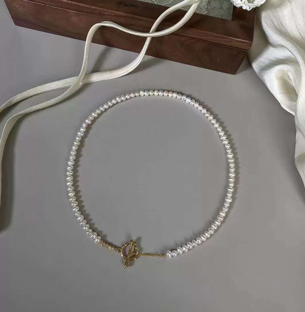 Freshwater pearl necklace , plated with 18k gold , Pearl Size : 4-5mm , Pearl Necklace Length : 45cm ( MJ-2029 )