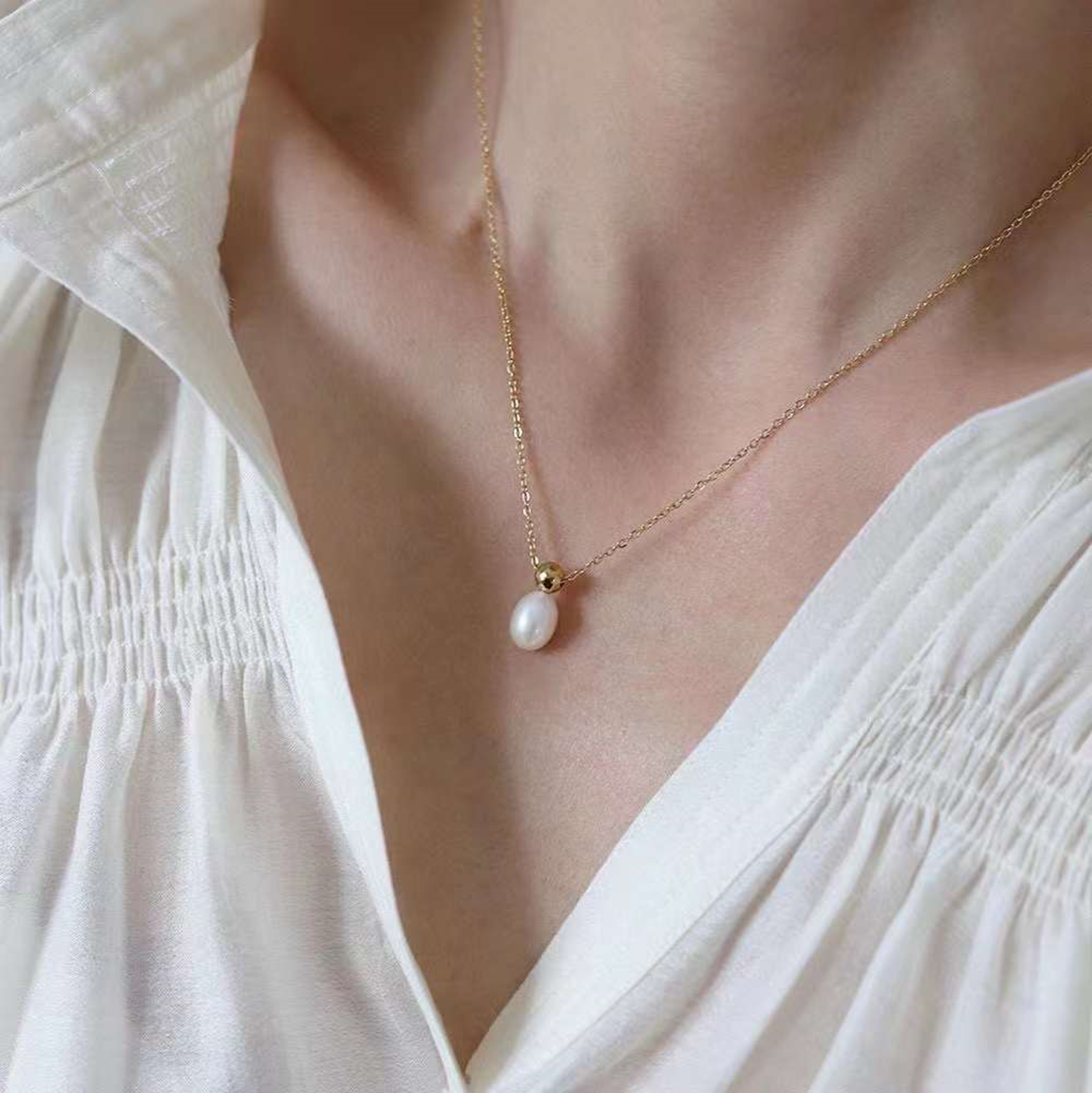 freshwater pearl necklace , plated with 18k gold , Pearl Size : 6-7mm , Pearl Necklace Length : 45cm ( MJ-2007 )