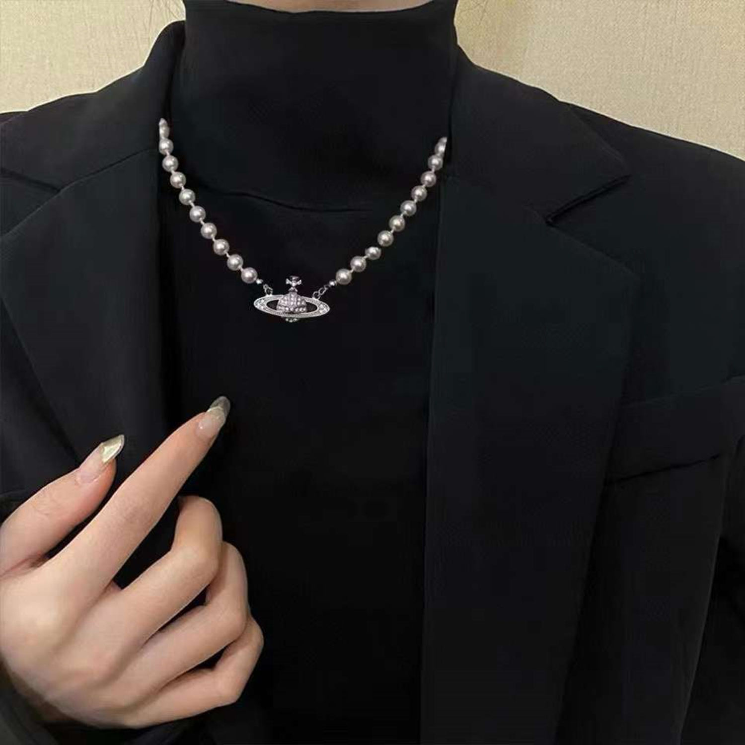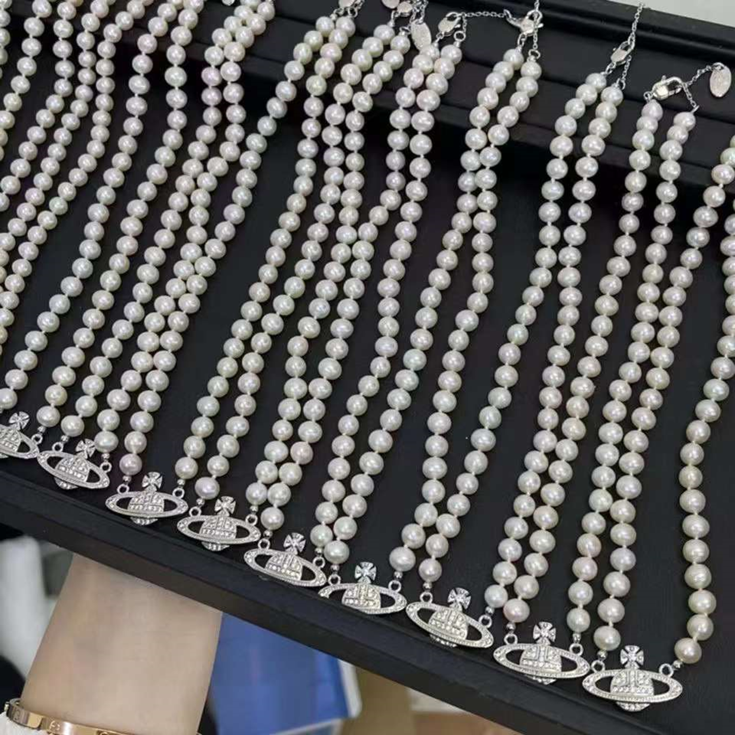 freshwater pearl necklace , plated with silver/zircon , Pearl Size : 7-8mm , Pearl Necklace Length : 40+5cm ( MJ-2015 )
